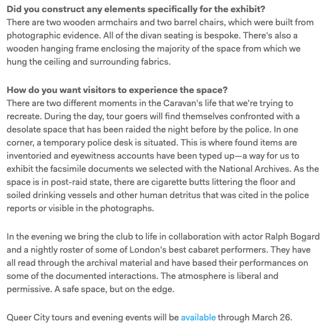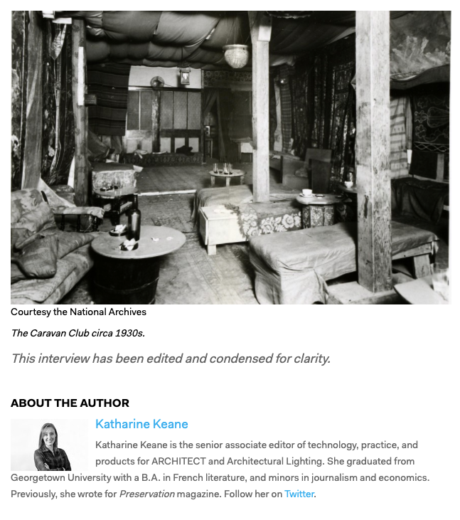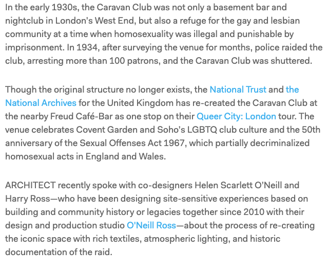 Feature in the Magazine of the American Institute of Architects about recreating an illegal LGBTQ nightclub from the 1930's