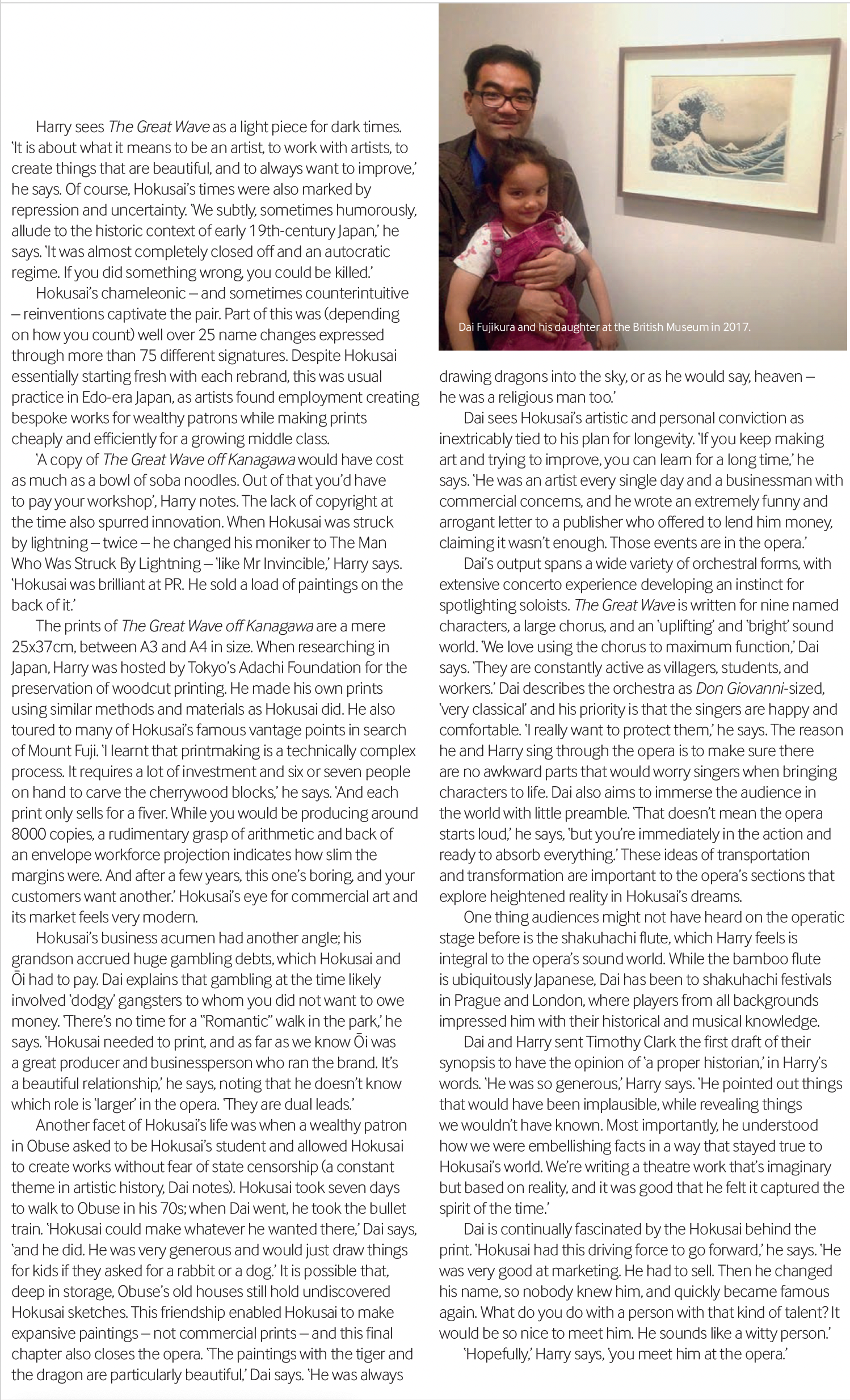Interview on The Great Wave, with composer Dai Fujikura for Brio, Scottish Opera's supporters journal.