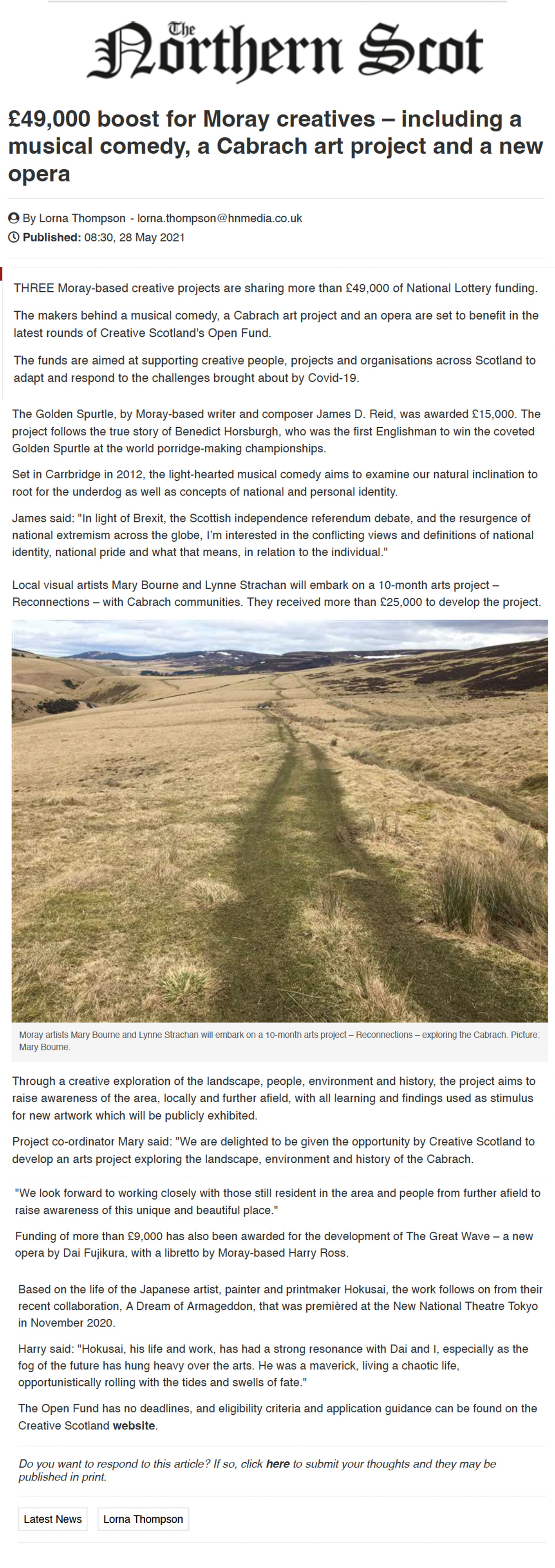 Article about recent funding from Creative Scotland for The Great Wave, my next opera with Dai Fujikura.